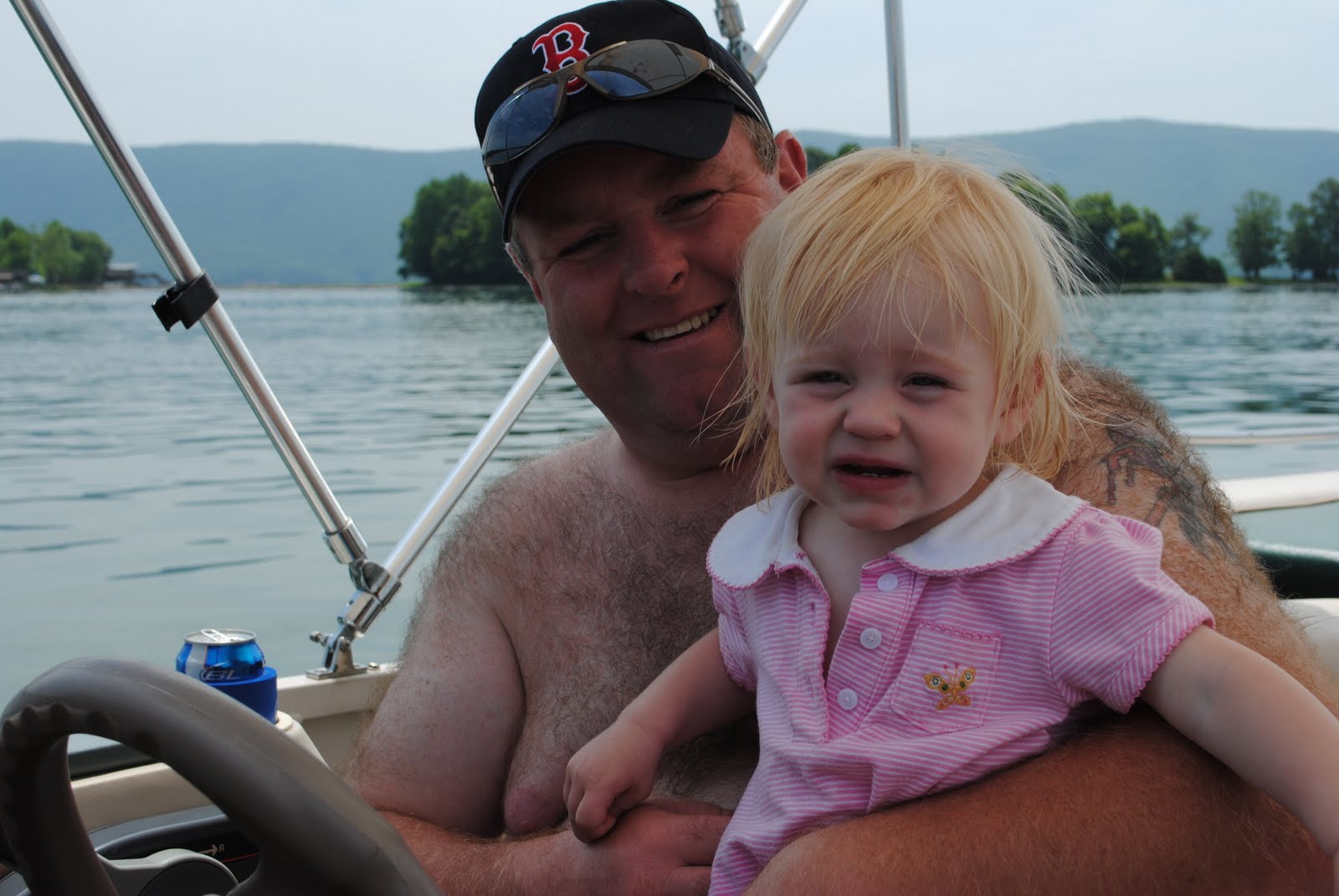 Kevin, Eli, and I spent a long weekend at Smith Mountain Lake with Dave, Christine, and Julia Walsh. Christine's family owns a condo on the lake. We left late Thursday night and arrived just before midnight. Both kids were up early the next morning- a little before 6am (!)- so we got on the boat early and took advantage of the beautiful day. The weather was fantastic- blue skies, warm sun- we couldn't have asked for better weather.