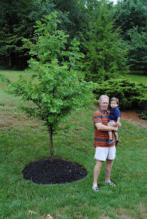 My dad planted a tree in memory of my Grandma and in honor of Eli. Last July I took a picture of Pop and Eli next to the tree. We took the second year picture this weekend. What a difference a year makes... for the tree and for Eli.
