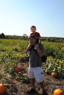 This past Sunday afternoon, we went to Mayne's Farm with the Walsh family. Eli and Julia both loved the hayride. Neither one of them was super fond of the pumpkin hunting. They kissed and hugged a lot on command which was really cute. Here are some pictures from our day.